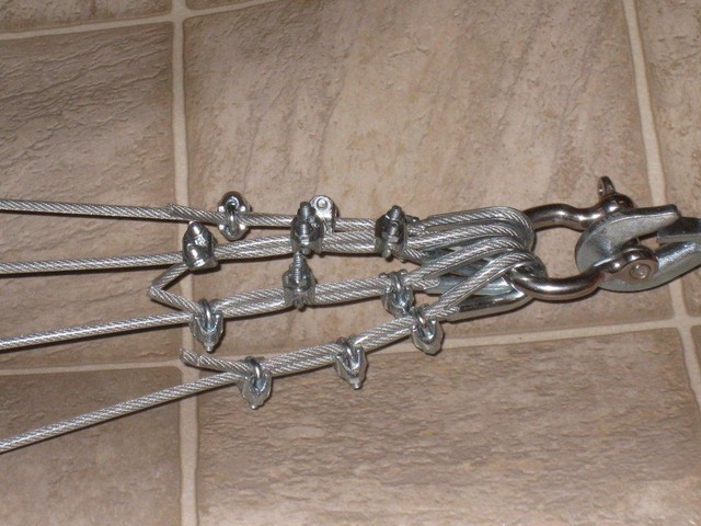I think he used 2 plumbing fixtures as dead weights to keep tension on the lines. Much quicker than melting some lead and coating with plasti-dip like I did.