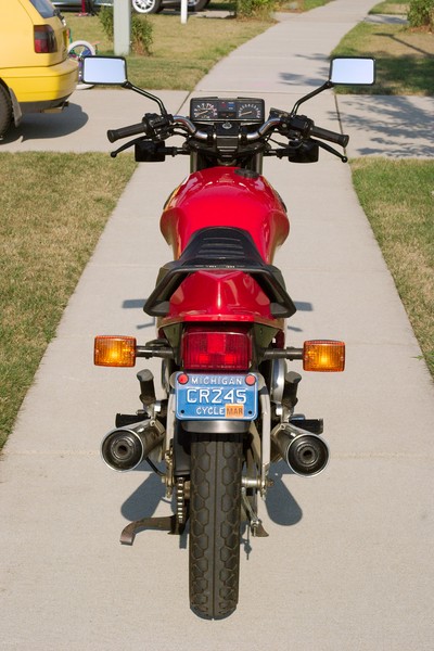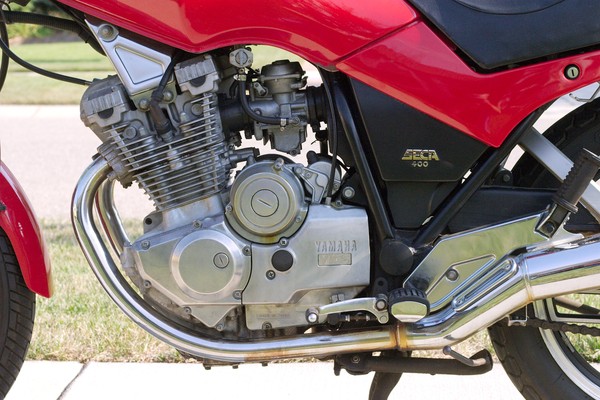 This was my second motorcycle. I bought it in college after my honda mb5 50cc bike was stolen. This yamaha seca cost me $1200 in 1984. The dealer sold it as new old stock. It was originally a more beautiful candy apple red, but it sat in the Florida sun for a couple years and I had to repaint it. This color is ferrari red. She cleaned up nice. The boxy gauges were the popular style in 1982.