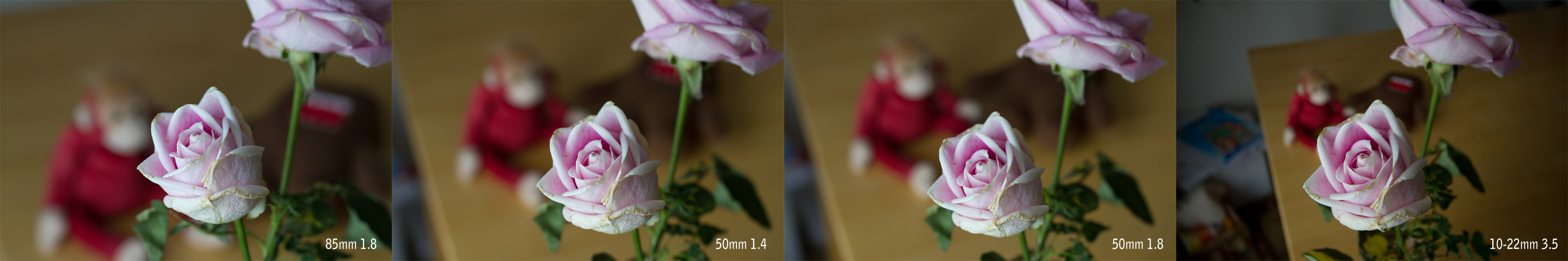I shot a close up a a rose with monkey in the background to compare bokehs.